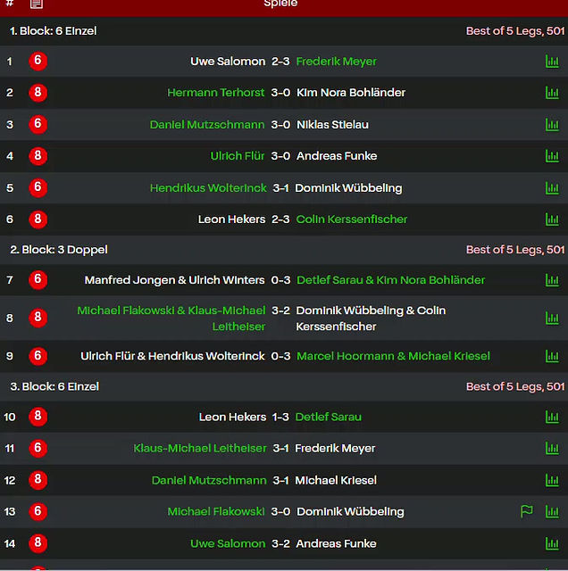 Saisonstart in der Ally - Polly Dartsarena - Team 1 ist Tabellenführer